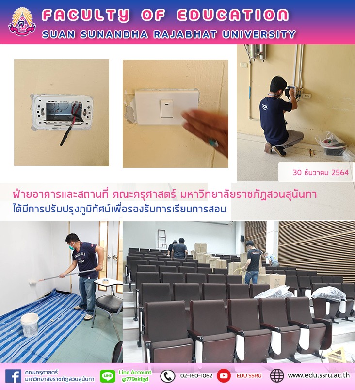 วันที่ 30 ธันวาคม 2564 ฝ่ายอาคารและสถานที่ คณะครุศาสตร์ มหาวิทยาลัยราชภัฏสวนสุนันทา ได้มีการปรับปรุงภูมิทัศน์เพื่อรองรับการเรียนการสอน
