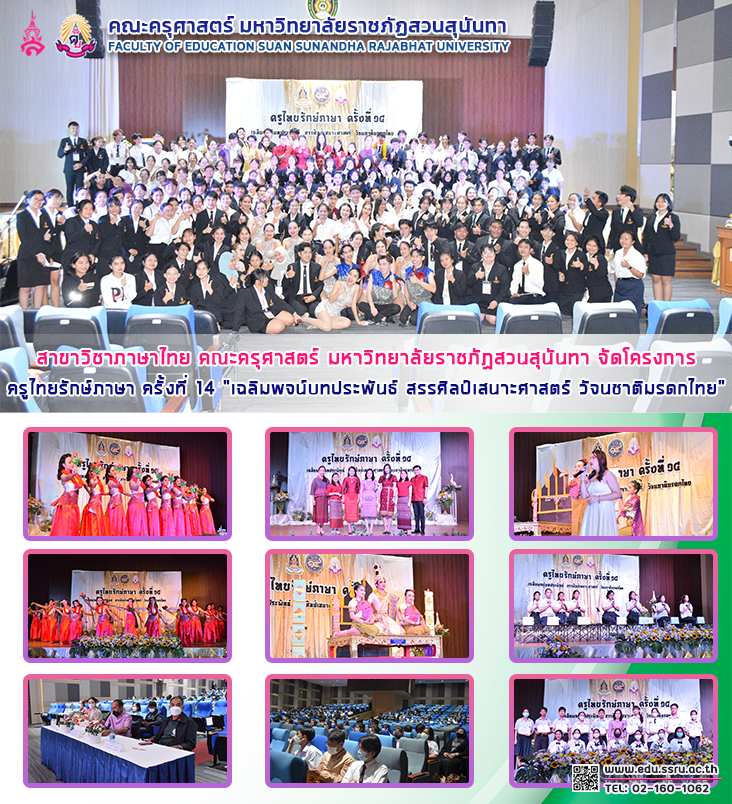 เมื่อวันที่ 28 มกราคม 2566 สาขาภาษาไทย คณะครุศาสตร์ มหาวิทยาลัยราชภัฏสวนสุนันทา จัดโครงการครูไทยรักษ์ภาษา ครั้งที่ 14 “เฉลิมพจน์บทประพันธ์ สรรศิลป์เสนาะศาสตร์ วัจนชาติมรดกไทย” มีการมอบรางวัลให้แก่ผู้ชนะเลิศการประกวดเรียงความและคัดลายมือ และการเเข่งขันประชันกลอนสด การอ่านทำนองเสนาะ และการสวดโอ้เอ้วิหารราย รอบชิงชนะเลิศ ณ หอประชุมสุนันทานุสรณ์