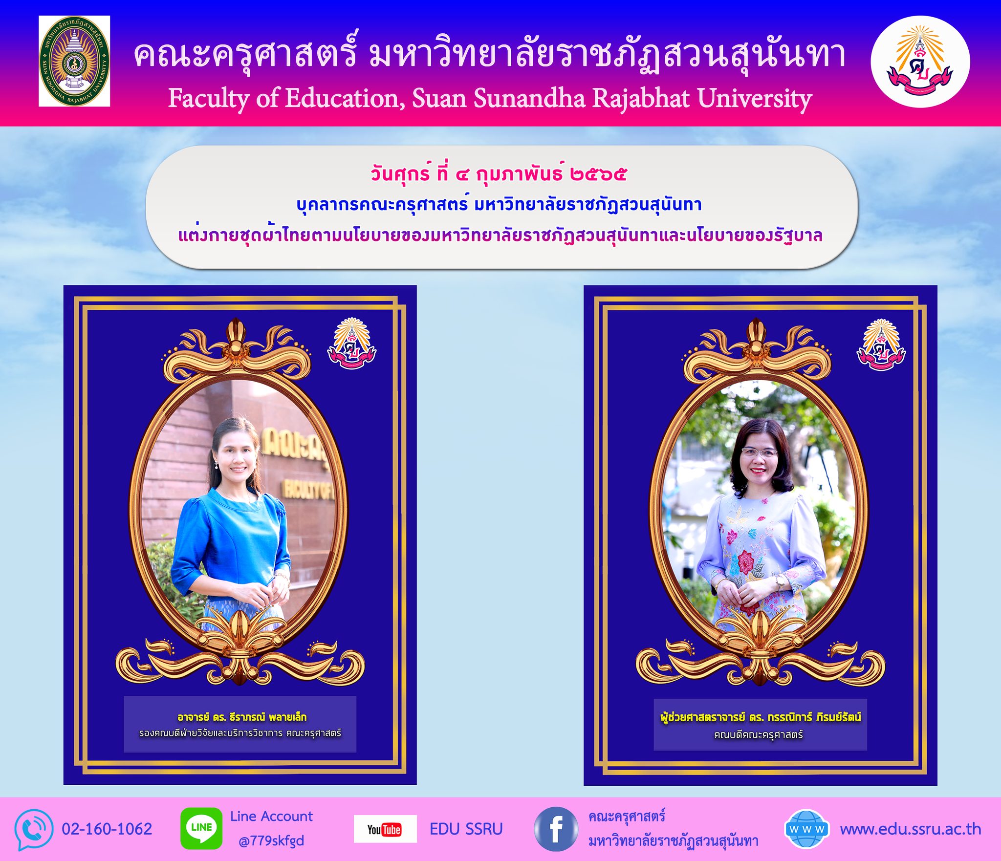 แต่งกายชุดผ้าไทยตามนโยบายของมหาวิทยาลัยราชภัฏสวนสุนันทาและนโยบายของรัฐบาล