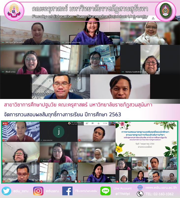 วันที่ 7 พฤษภาคม 2564 สาขาวิชาการศึกษาปฐมวัย คณะครุศาสตร์ มหาวิทยาลัยราชภัฏสวนสุนันทา จัดการทวนสอบผลสัมฤทธิ์ทางการเรียน ปีการศึกษา 2563