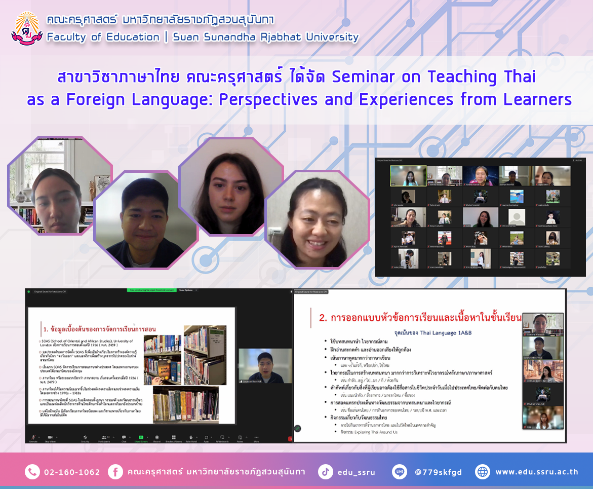 เมื่อวันที่ 7 มีนาคม 2567 สาขาวิชาภาษาไทย คณะครุศาสตร์ มหาวิทยาลัยราชภัฏสวนสุนันทา ได้จัด Seminar on Teaching Thai as a Foreign Language: Perspectives and Experiences from Learners